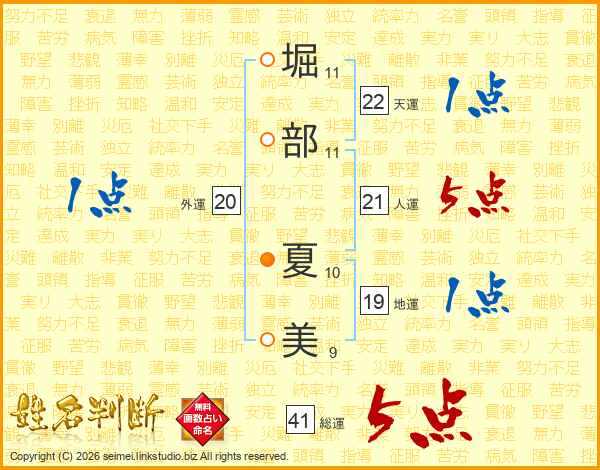 堀部夏美さんの総運は41画の5点!