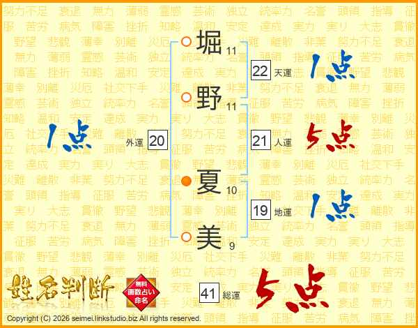 堀野夏美さんの総運は41画の5点!