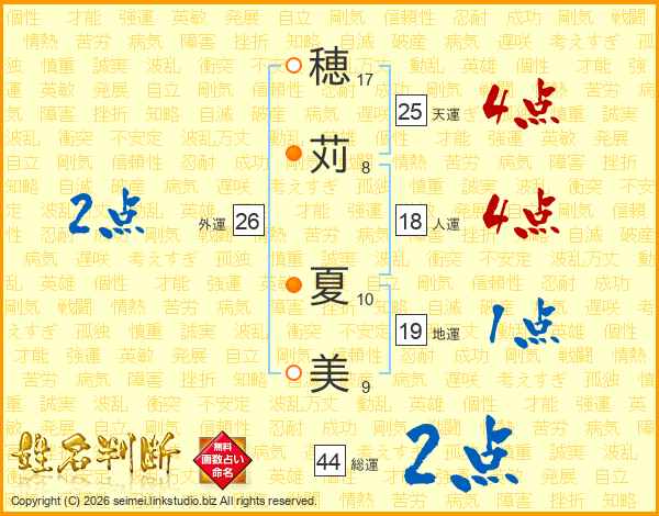 穂苅夏美さんの総運は44画の2点!