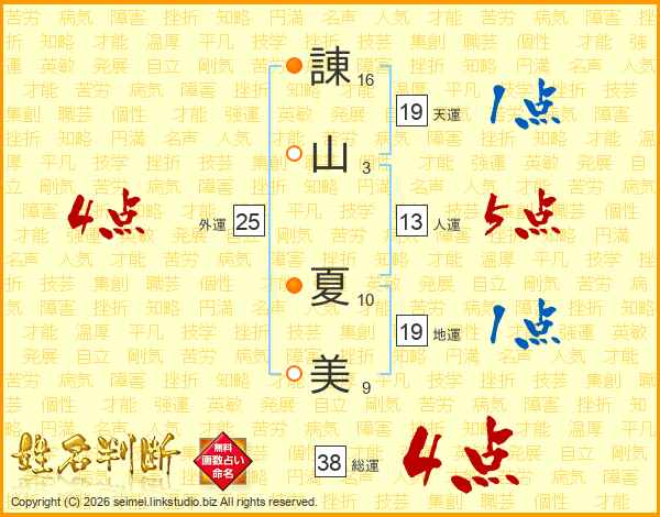 諌山夏美さんの総運は38画の4点!