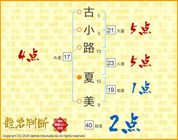古小路夏美さんの天運は21画の5点!