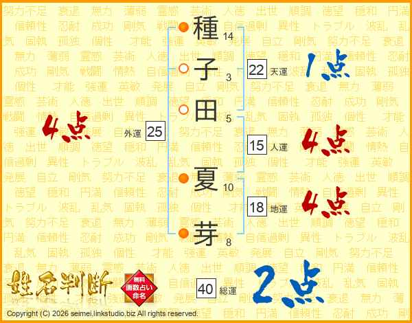 種(14画)子(3画)田(5画) 夏(10画)芽(8画)