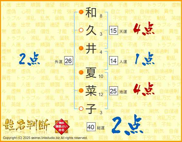 和久井夏菜子さんの総運は40画の2点!
