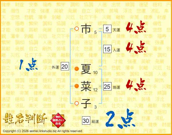 市夏菜子さんの総運は30画の2点!