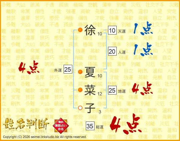 徐夏菜子さんの総運は35画の4点!