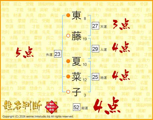 東藤夏菜子さんの総運は52画の4点!