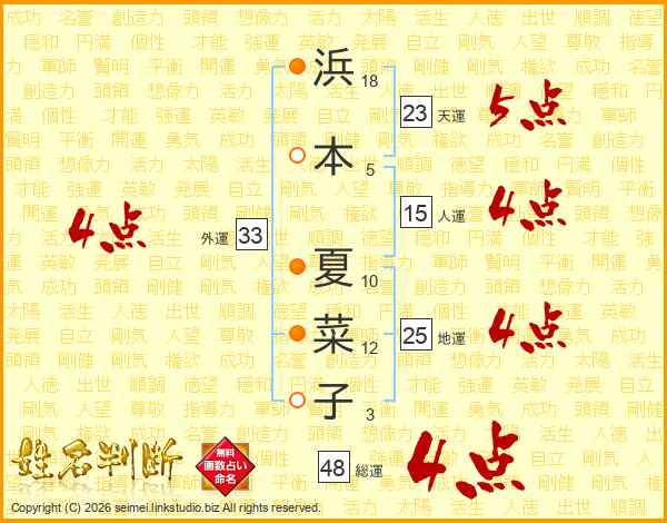 浜本夏菜子さんの外運は33画の4点!