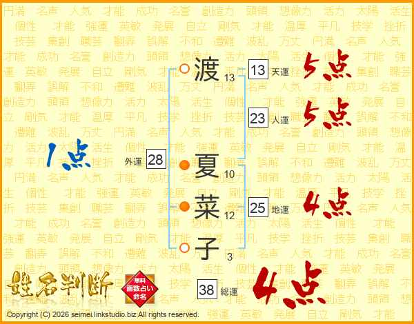 渡夏菜子さんの総運は38画の4点!