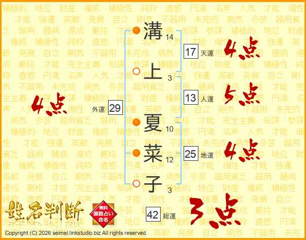 溝(14画)上(3画) 夏(10画)菜(12画)子(3画)