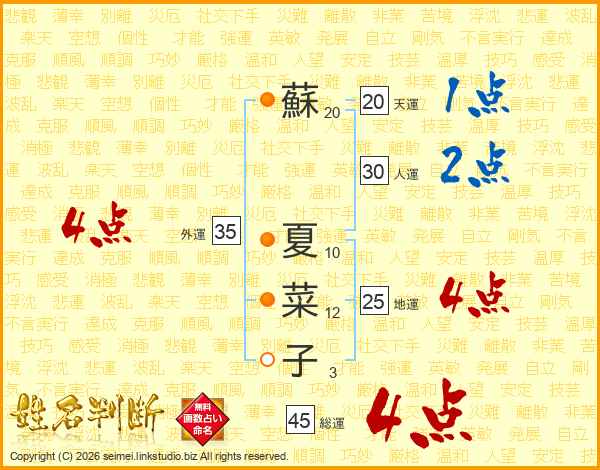 蘇夏菜子さんの総運は45画の4点!