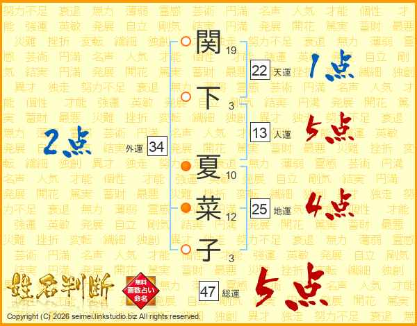 関下夏菜子さんの総運は47画の5点!