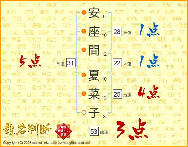安座間夏菜子さんの外運は31画の5点!