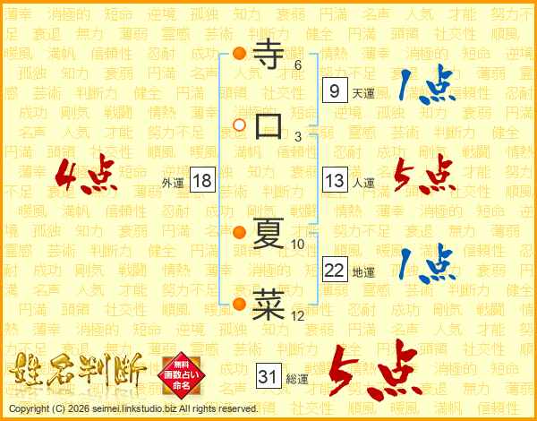 寺口夏菜さんの総運は31画の5点!