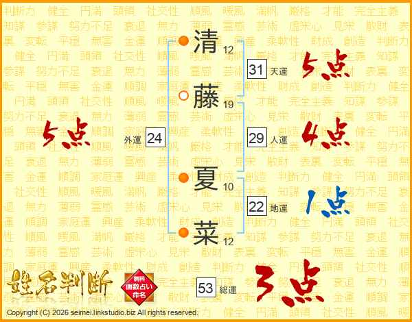 清(12画)藤(19画) 夏(10画)菜(12画)