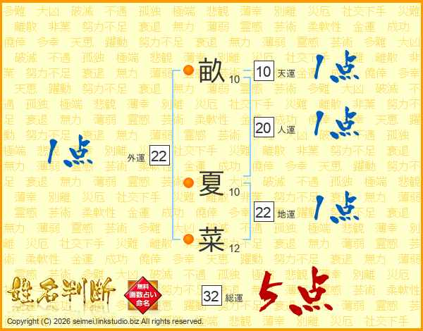 畝夏菜さんの総運は32画の5点!