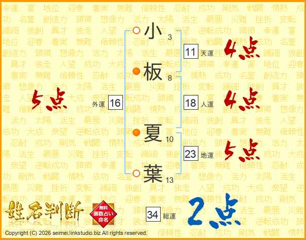 小板夏葉さんの天運は11画の4点!