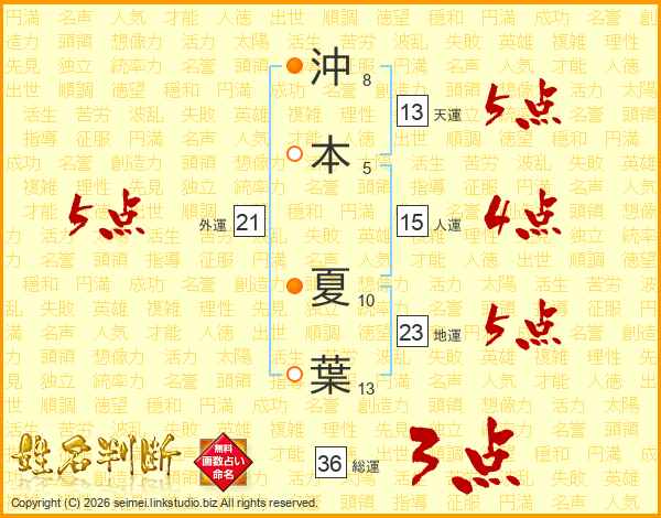沖本夏葉さんの天運は13画の5点!