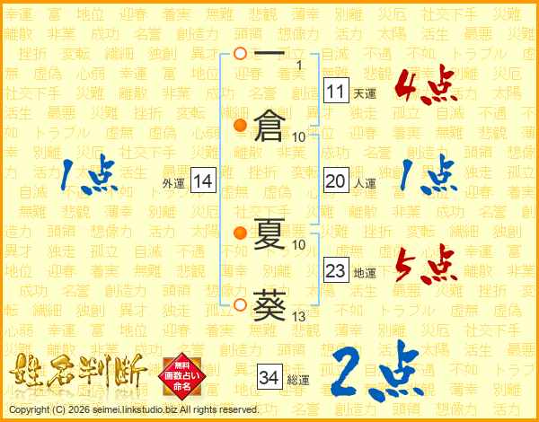 一(1画)倉(10画) 夏(10画)葵(13画)