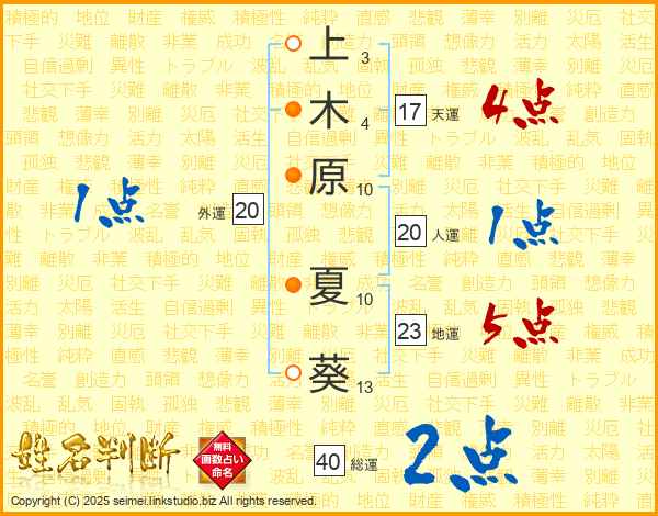 上木原夏葵さんの総運は40画の2点!