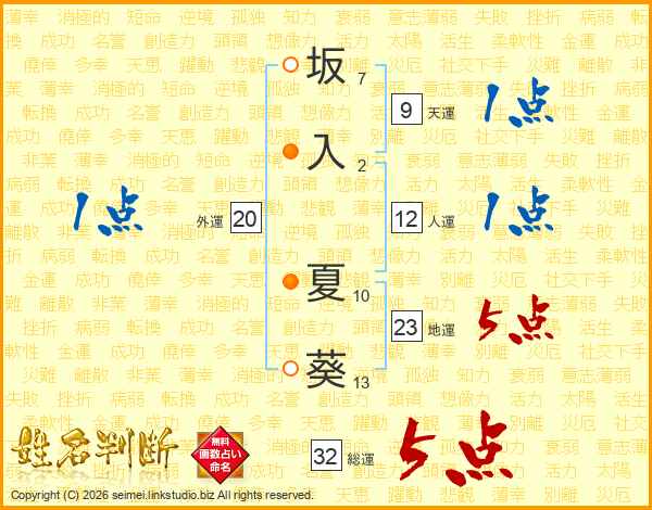 坂入夏葵さんの総運は32画の5点!