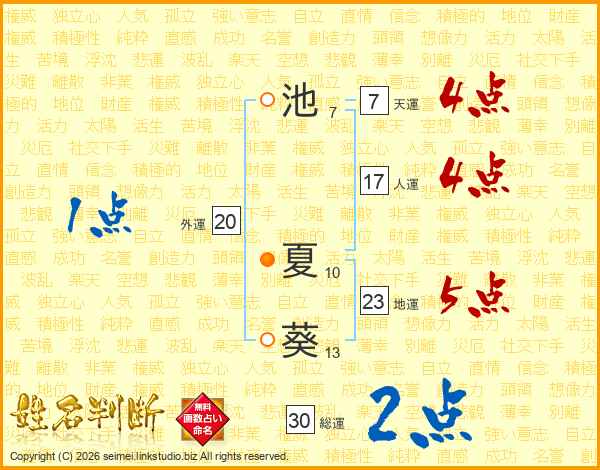池夏葵さんの地運は23画の5点!