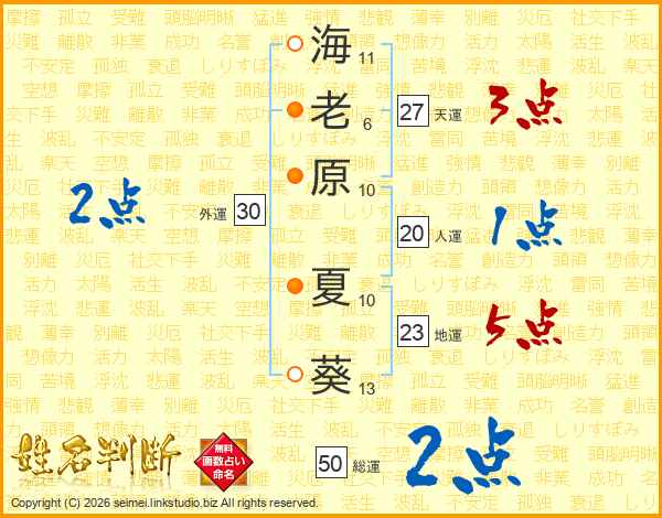 海老原夏葵さんの地運は23画の5点!