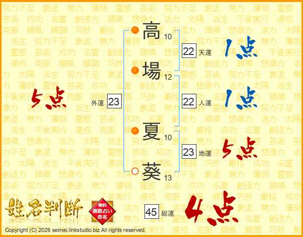 高場夏葵さんの総運は45画の4点!