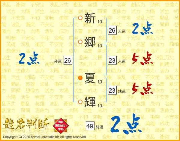 新郷夏輝さんの天運は26画の2点!