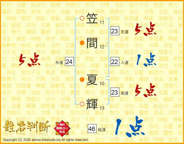 笠間夏輝さんの総運は46画の1点!