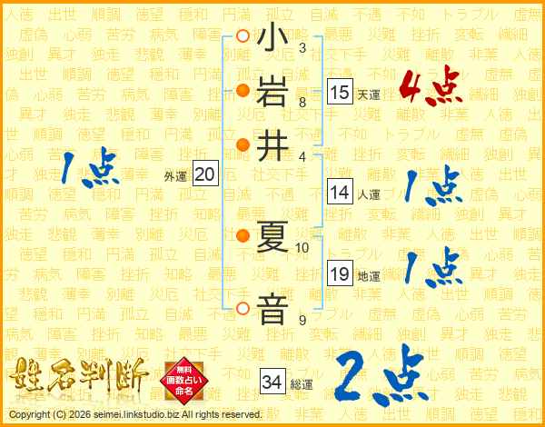 小岩井夏音さんの総運は34画の2点!