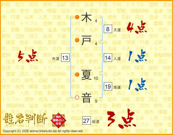 木戸夏音さんの外運は13画の5点!