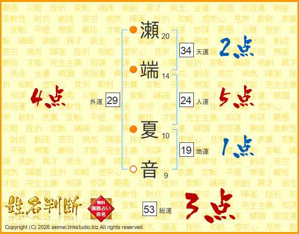 瀬端夏音さんの人運は24画の5点!