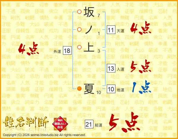 坂ノ上夏さんの天運は11画の4点!