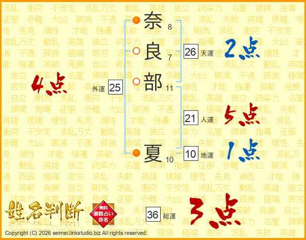 奈良部夏さんの天運は26画の2点!