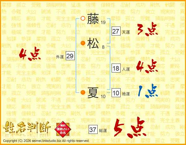 藤松夏さんの総運は37画の5点!