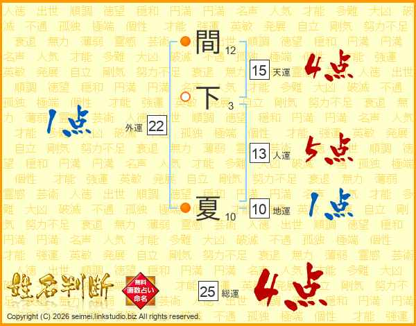間下夏さんの総運は25画の4点!