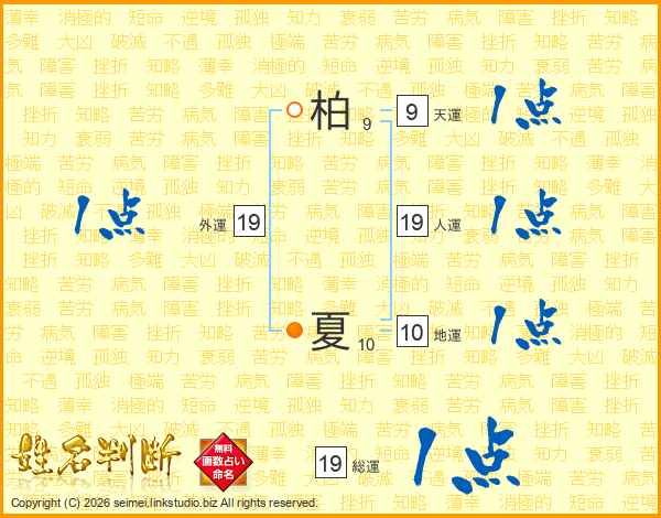 柏夏さんの総運は19画の1点!