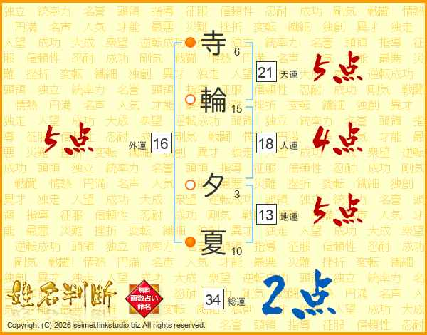 寺(6画)輪(15画) 夕(3画)夏(10画)