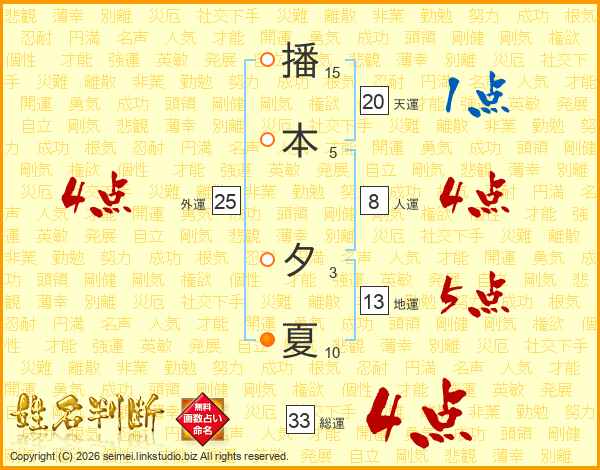 播本夕夏さんの総運は33画の4点!