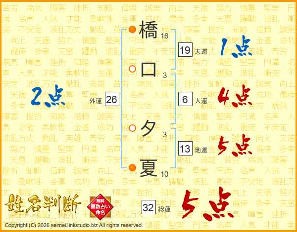橋口夕夏さんの総運は32画の5点!