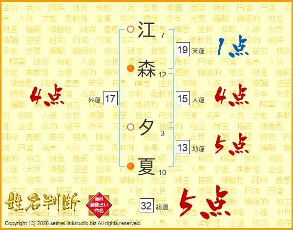江森夕夏さんの総運は32画の5点!
