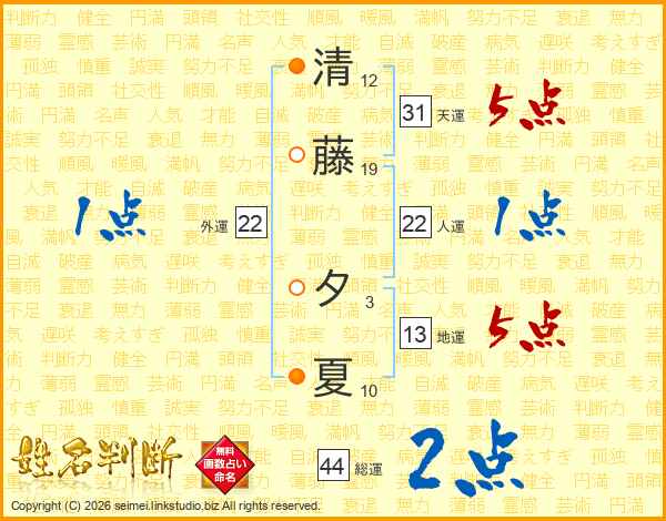 清(12画)藤(19画) 夕(3画)夏(10画)