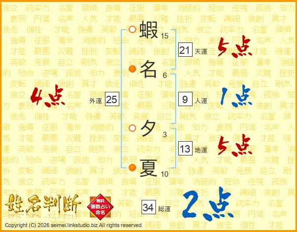 蝦名夕夏さんの総運は34画の2点!