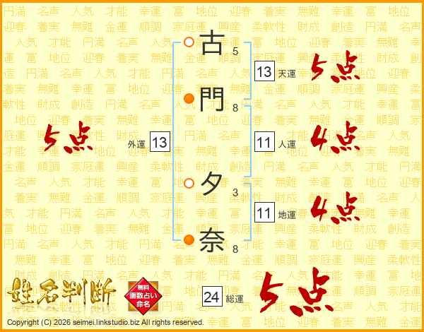 古門夕奈さんの外運は13画の5点!