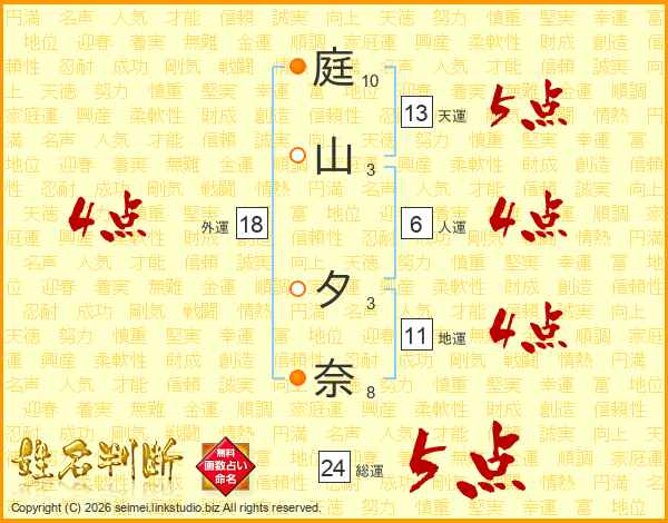 庭(10画)山(3画) 夕(3画)奈(8画)