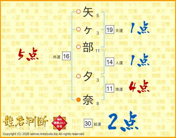 矢ヶ部夕奈さんの総運は30画の2点!