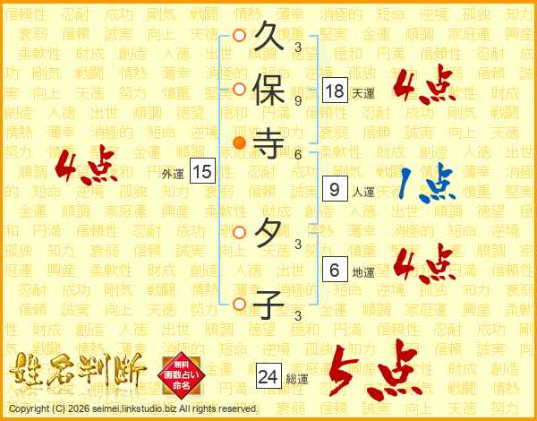 久(3画)保(9画)寺(6画) 夕(3画)子(3画)