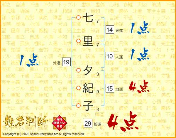 七里夕紀子さんの総運は29画の4点!