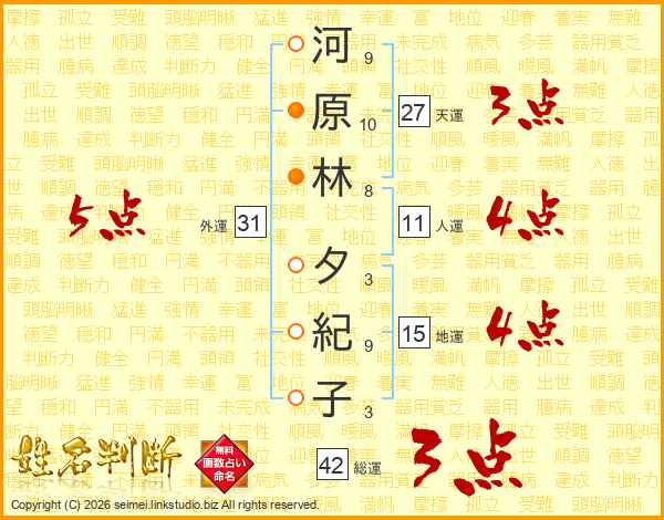 河原林夕紀子さんの外運は31画の5点!