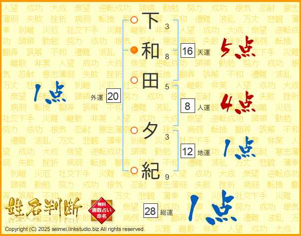 下和田夕紀さんの総運は28画の1点!